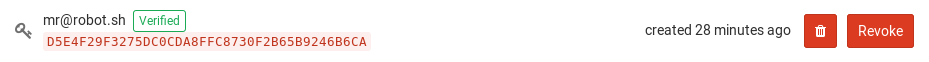 Revoking a key unverifies already signed commits. Commits that were verified by using this key will change to an unverified state. Future commits will also stay unverified once you revoke this key. This action should be used in case your key has been compromised.