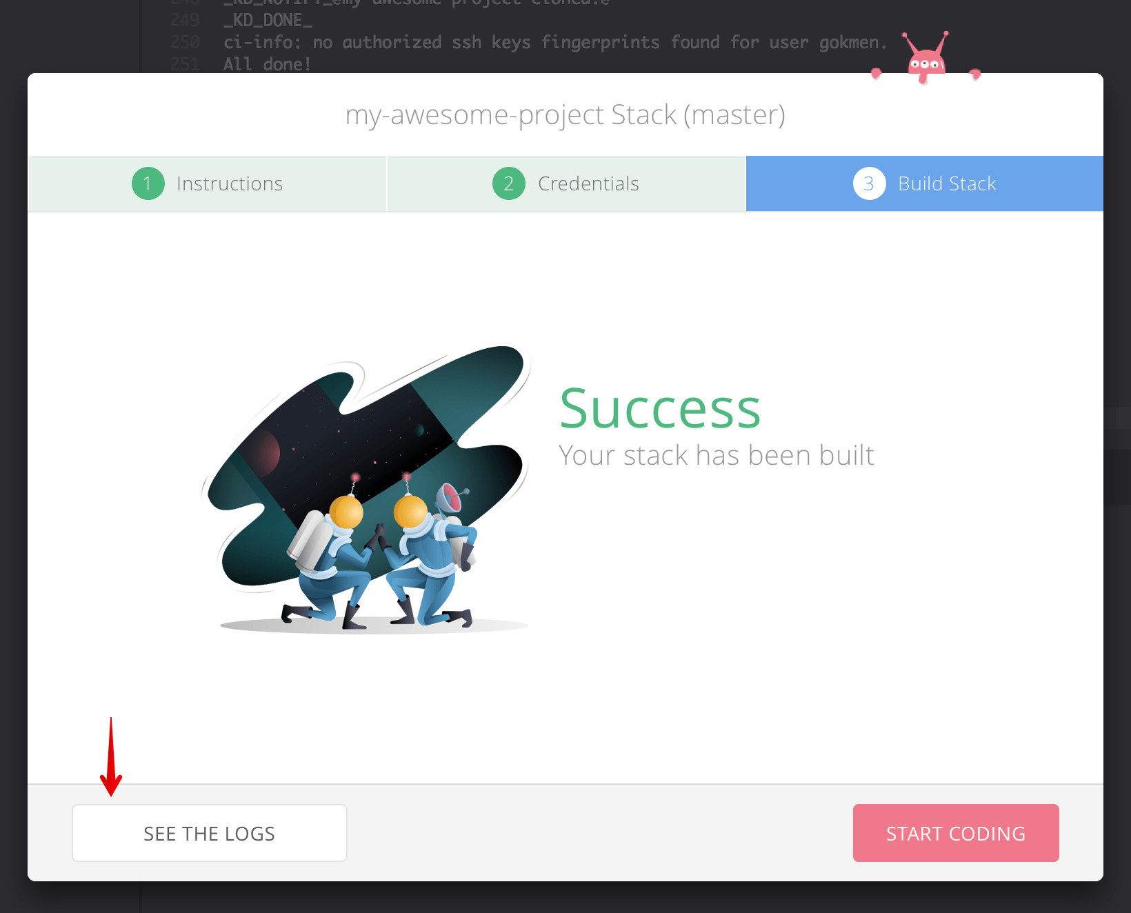 You can check out the Build Logs from this success modal as well.