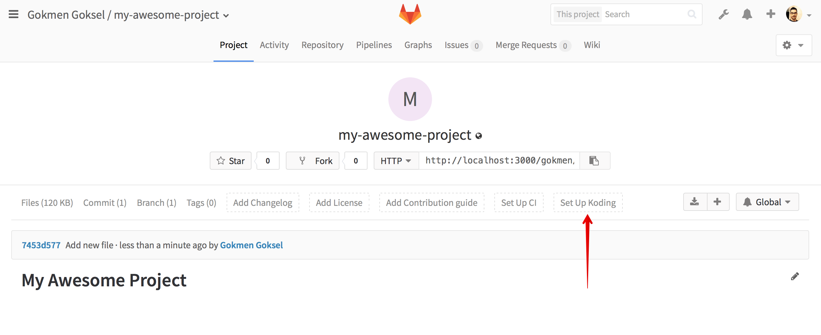by using Set Up Koding button which will be visible on every project's