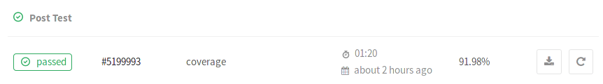 Markdown code will embed the test coverage report badge of the coverage job